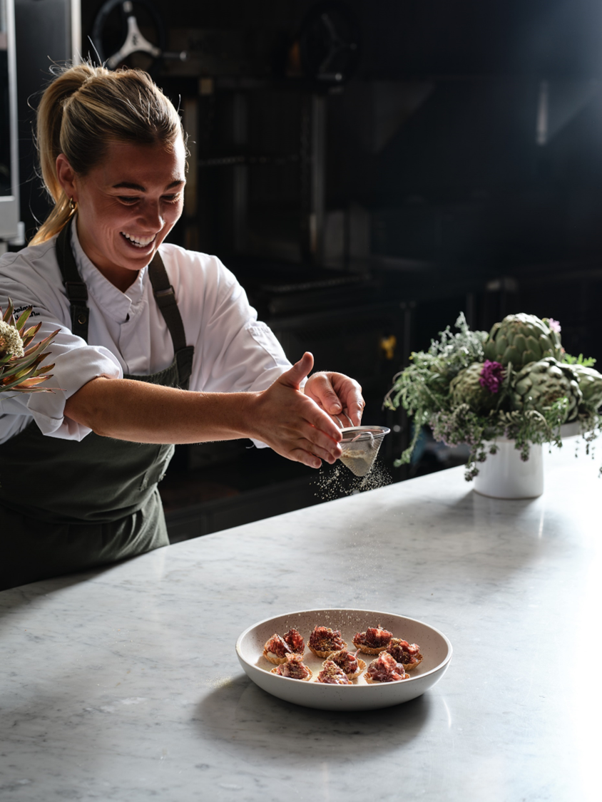 ARTICHOKE CORNETTO Jerusalem artichoke crème, artichoke chips, black garlic & nasturtium