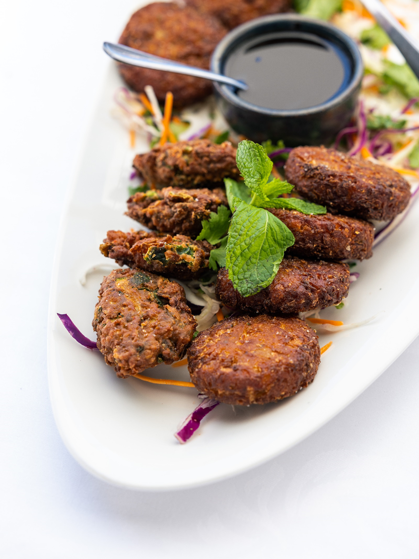 HARA BAHARA KEBAB Kebab patties made with spinach, potatoes, green peas, spices & herbs (V)